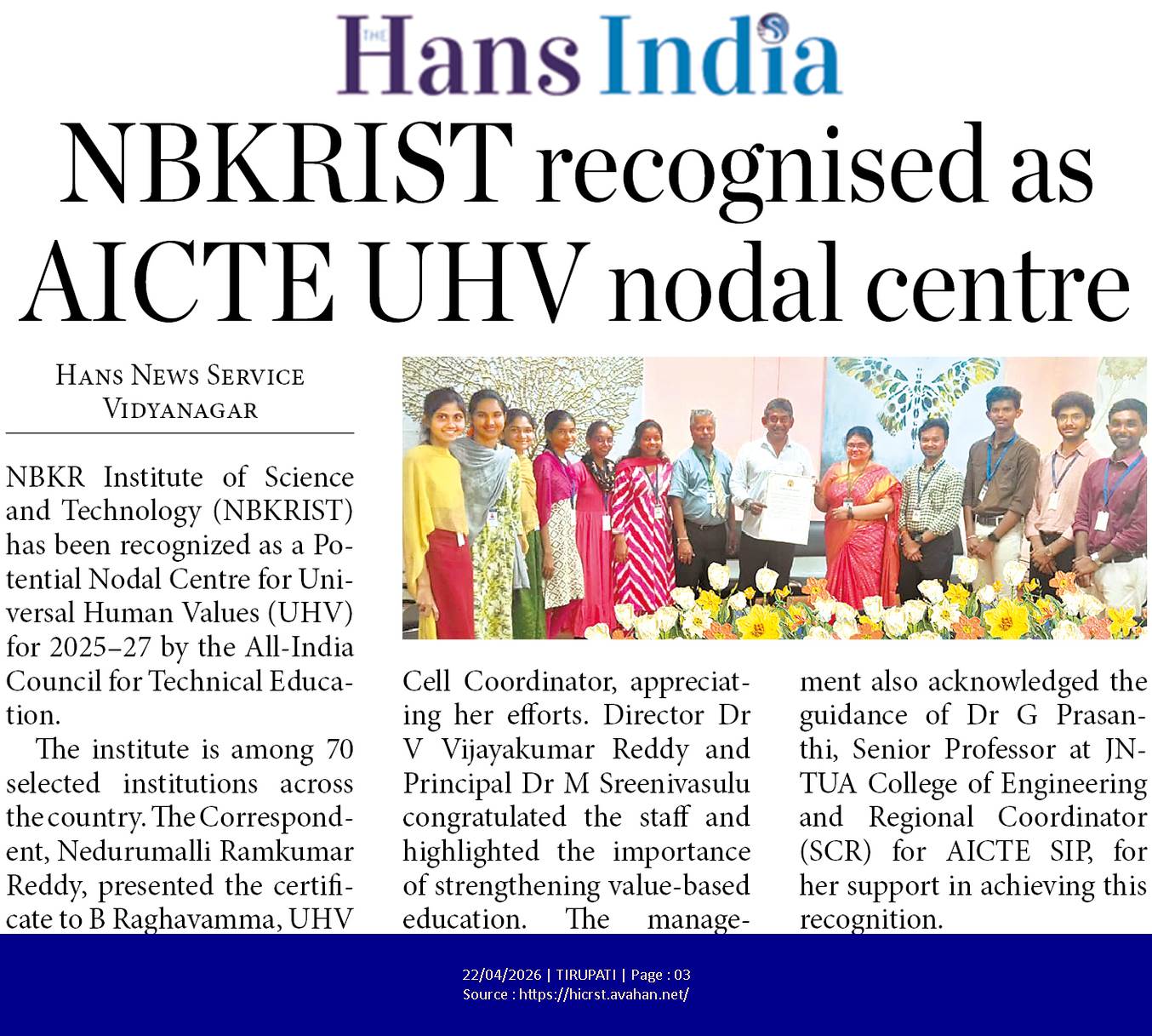 NBKR INSTITUTE OF SCIENCE & TECHNOLOGY