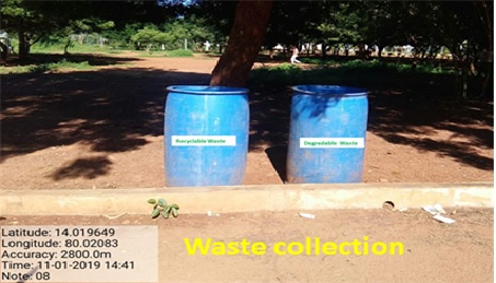 In our campus solid wastes are segregated at collection stage by using different types of bins for recyclable and decomposable waste.